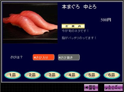 さび有、さび抜などのオプションを最大4つまで登録可能